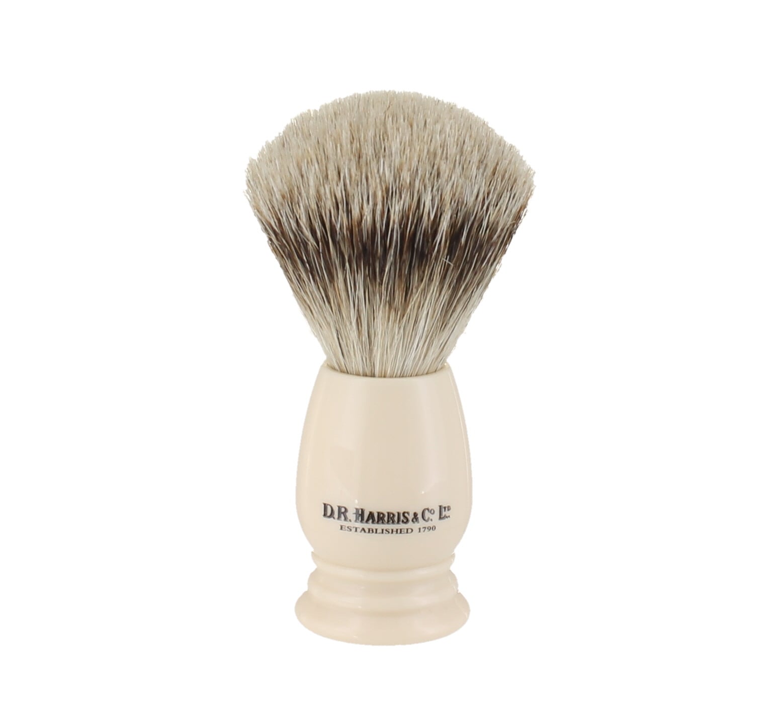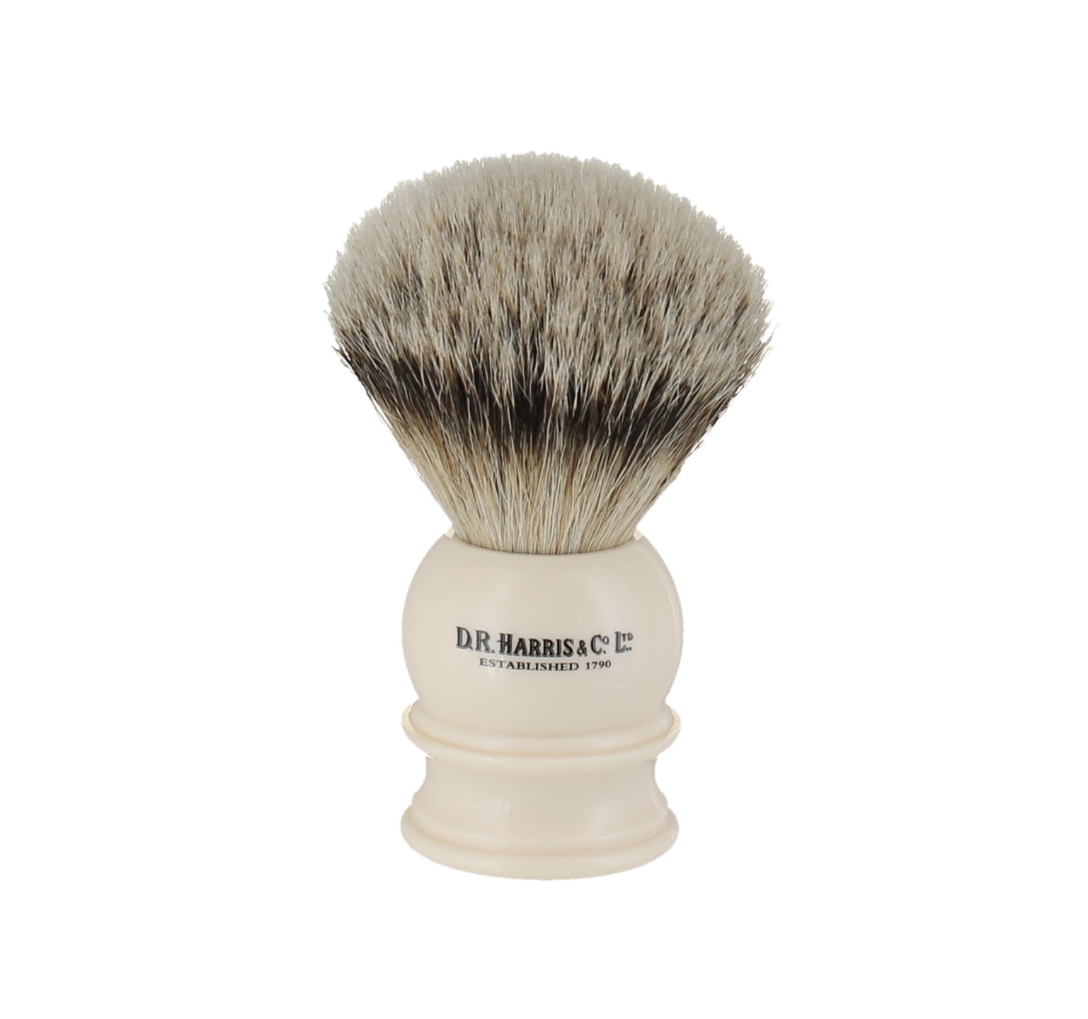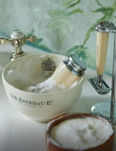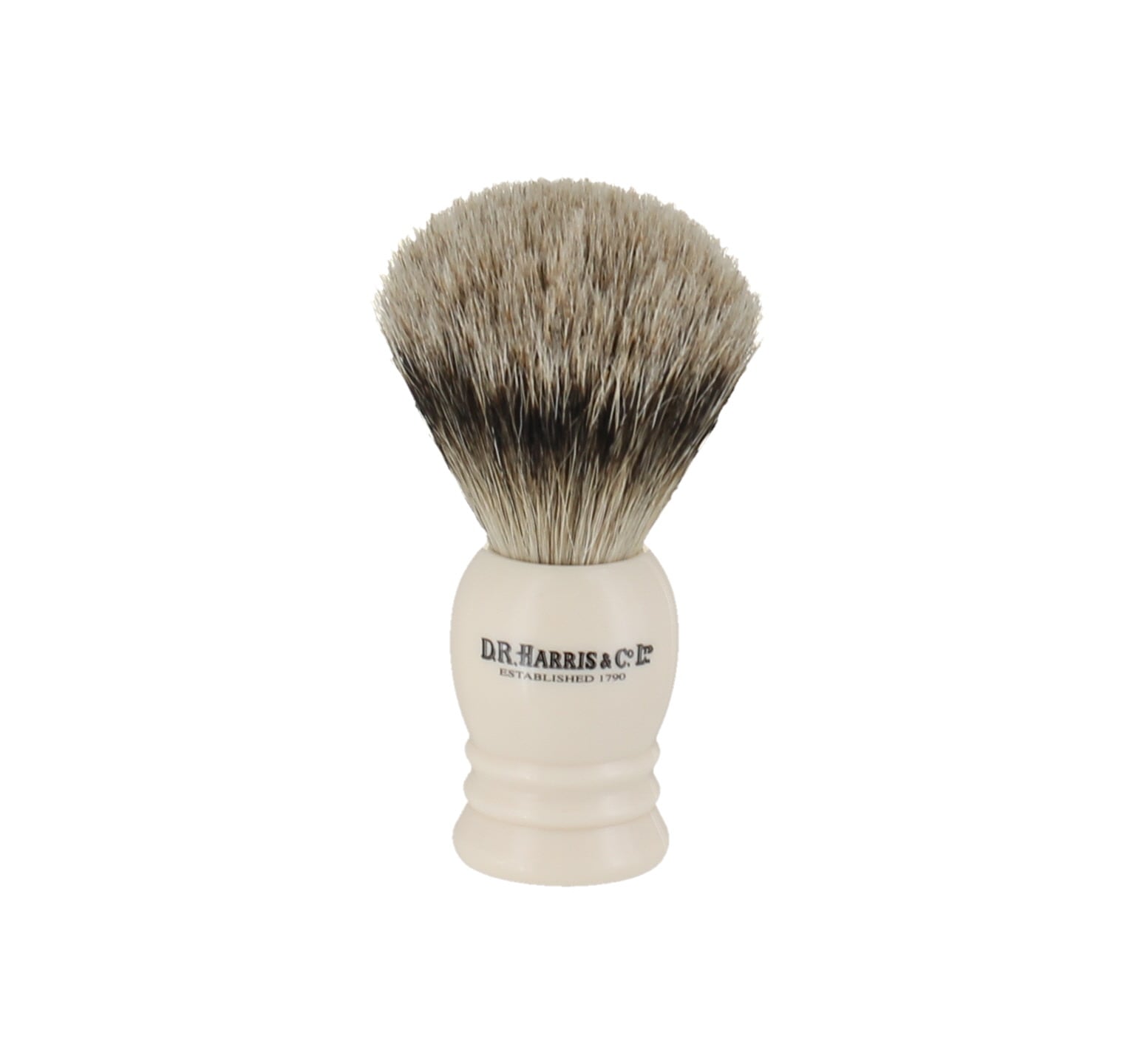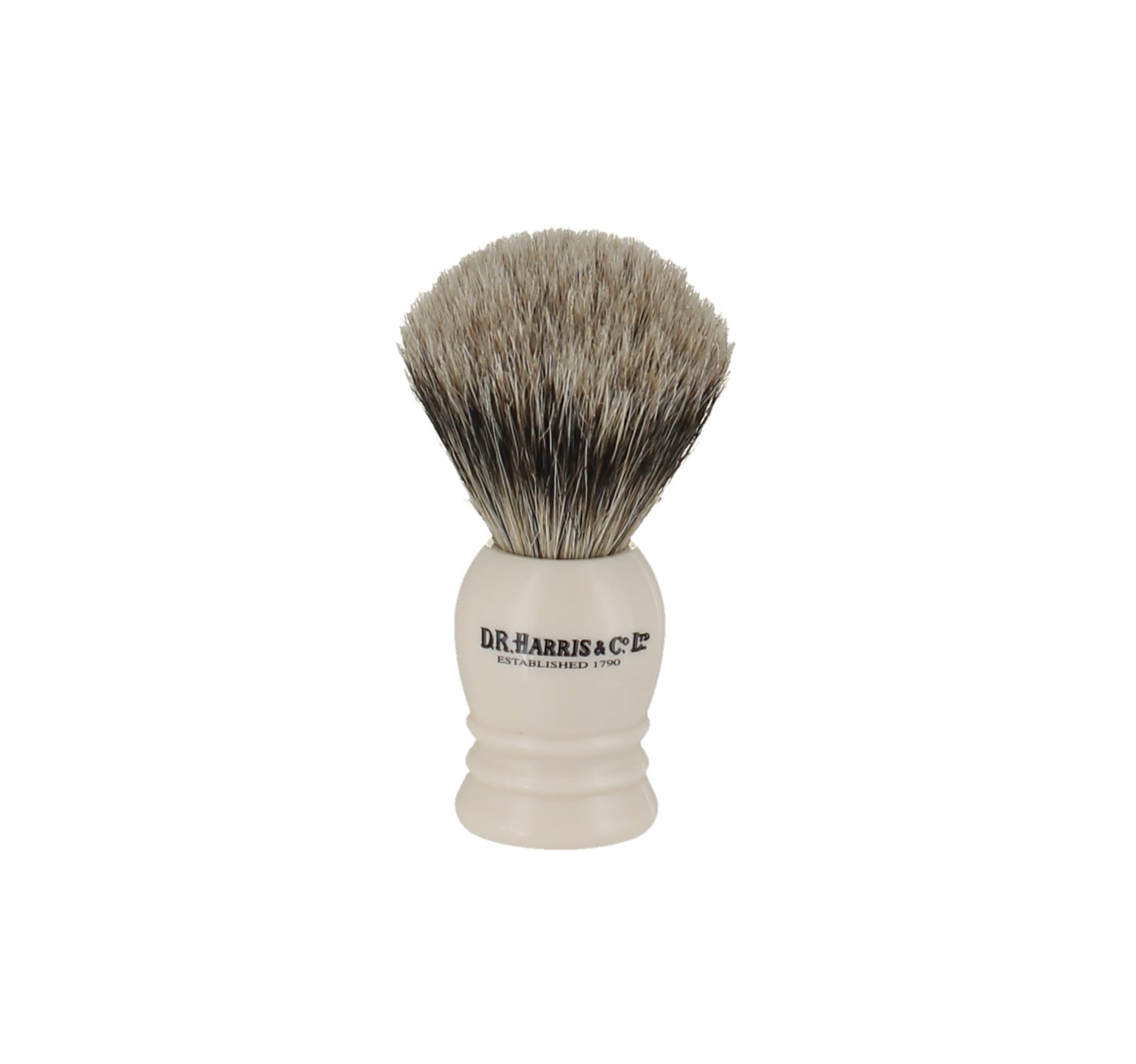 A range of three shaving brushes – H1, H2 and H3. Each embossed with the D.R. Harris logo and presented in a handsome box. All three models are made with the finest best grade badger hair that creates a lather far superior to that of an ordinary bristle brush. The handle is made of a white imitation ivory.