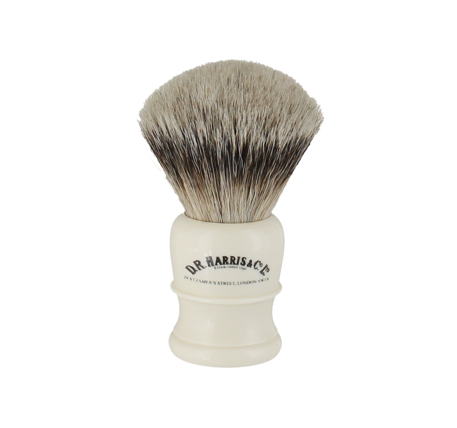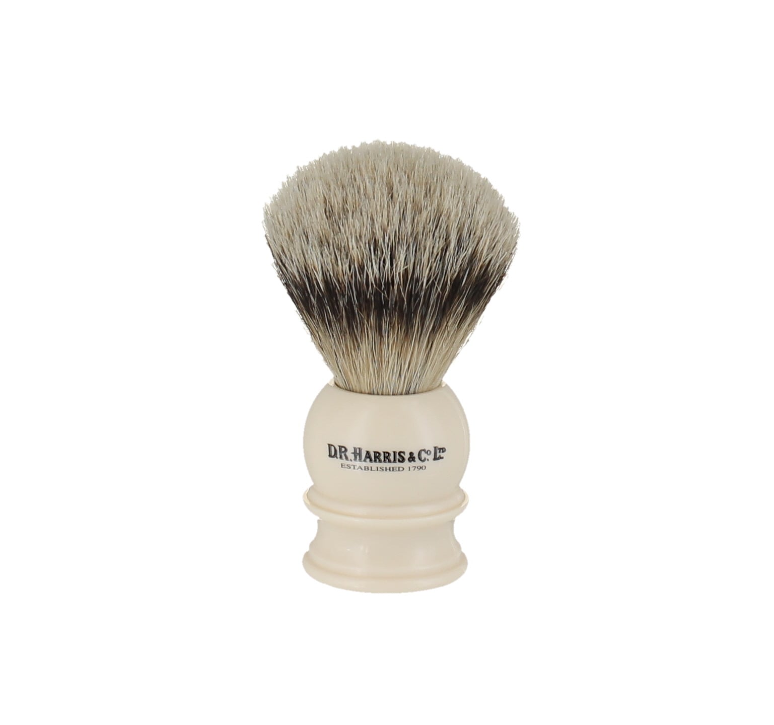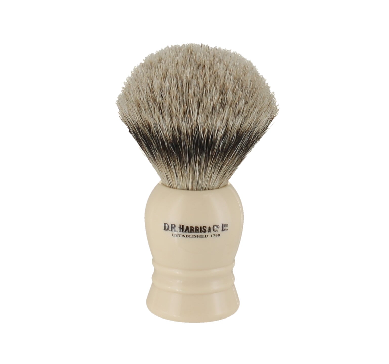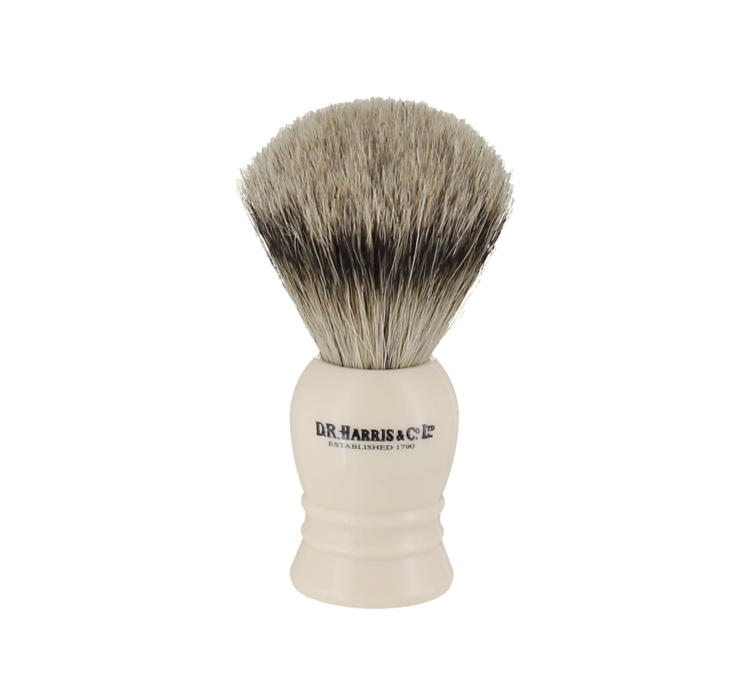 A range of three shaving brushes – H1, H2 and H3. Each embossed with the D.R. Harris logo and presented in a handsome box. All three models are made with the finest best grade badger hair that creates a lather far superior to that of an ordinary bristle brush. The handle is made of a white imitation ivory.