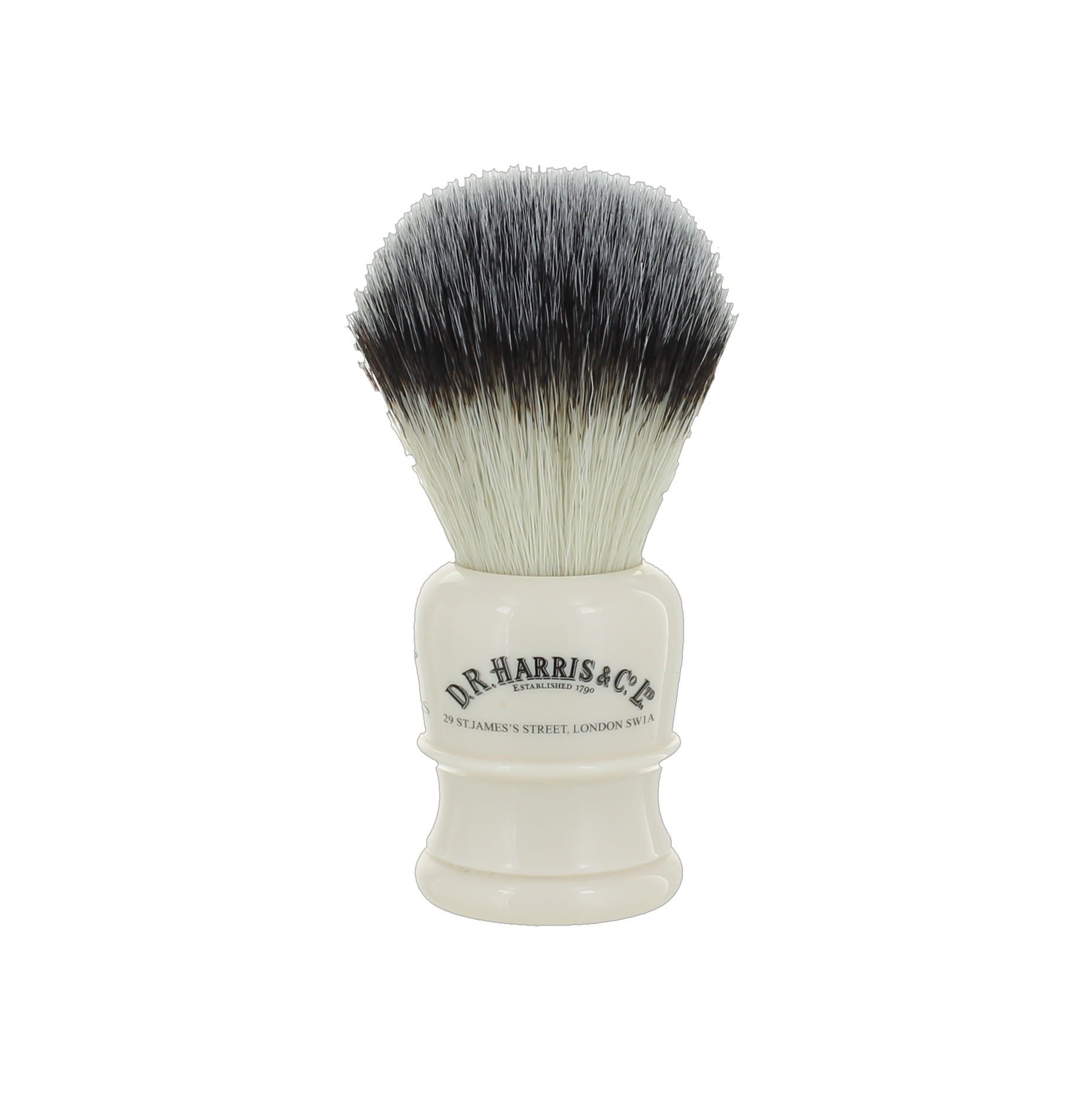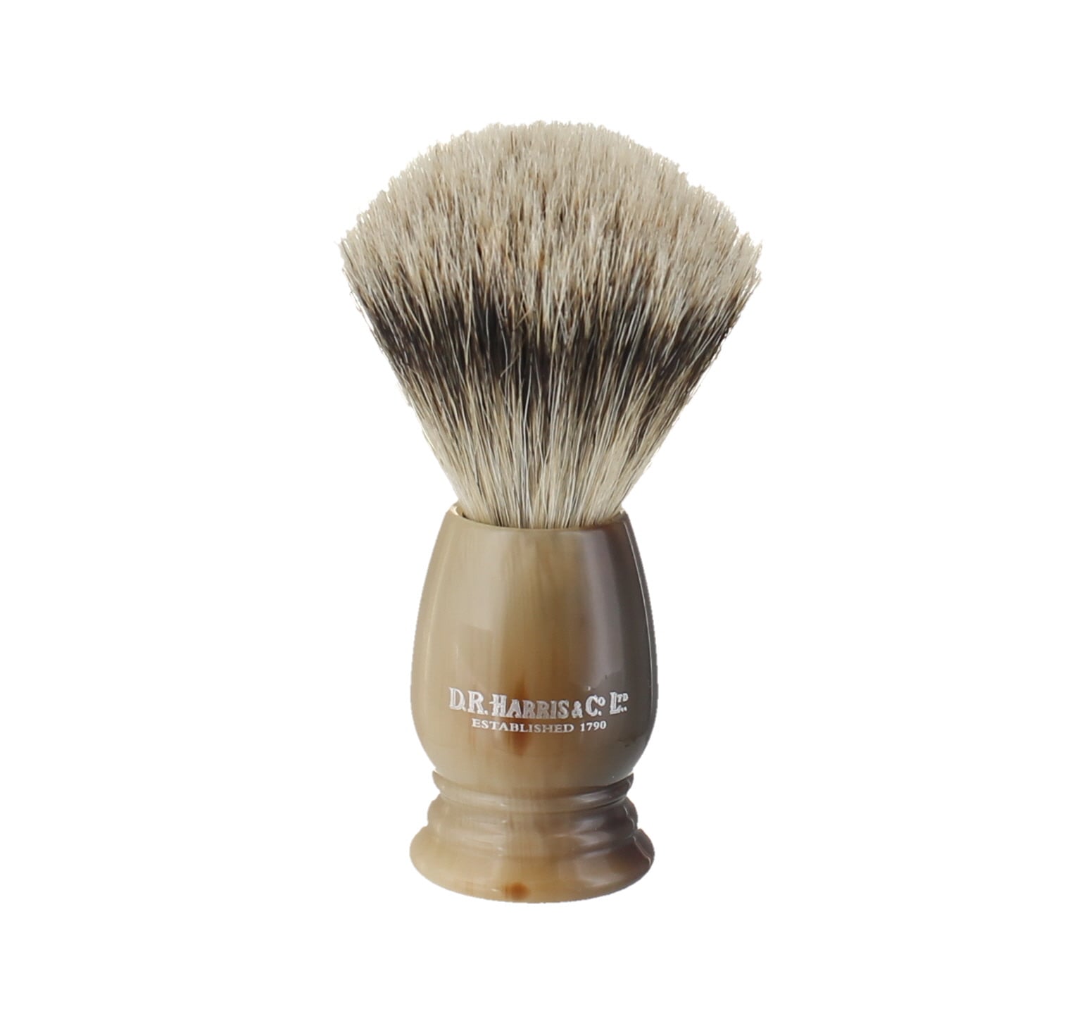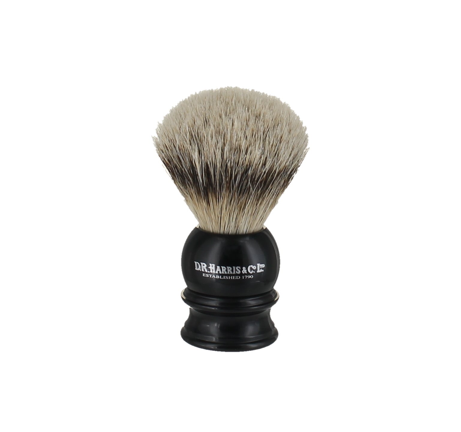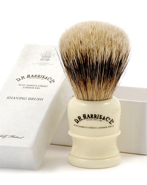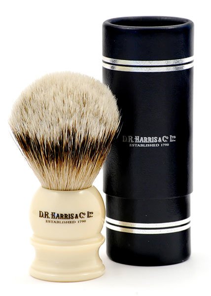 A range of three shaving brushes – H1, H2 and H3. Each embossed with the D.R. Harris logo and presented in a handsome box. All three models are made with the finest best grade badger hair that creates a lather far superior to that of an ordinary bristle brush. The handle is made of a white imitation ivory.
