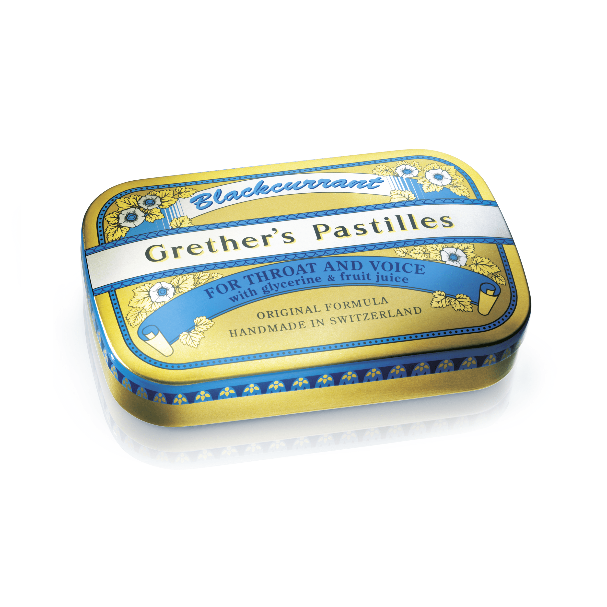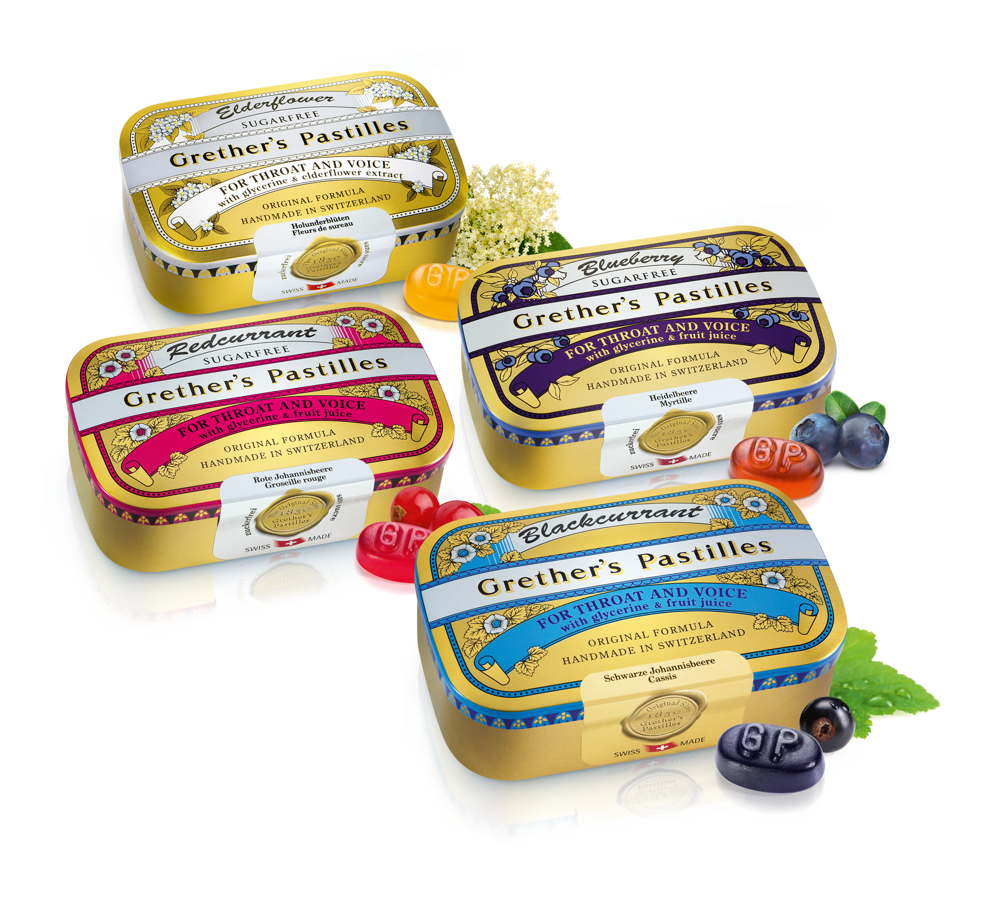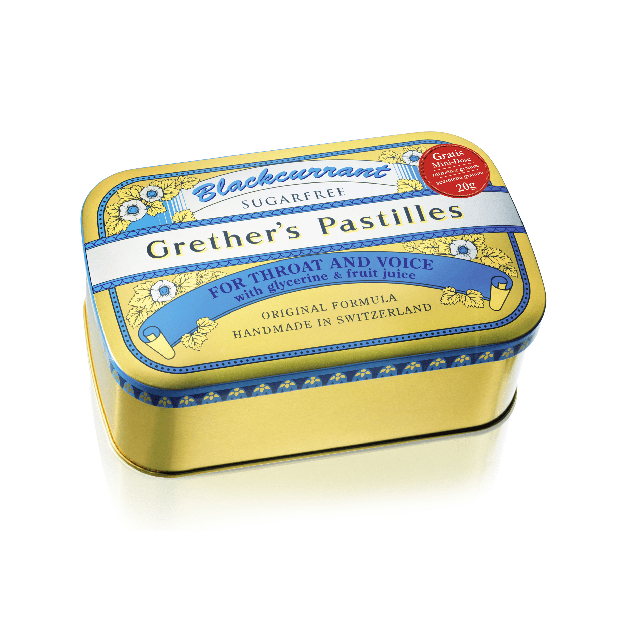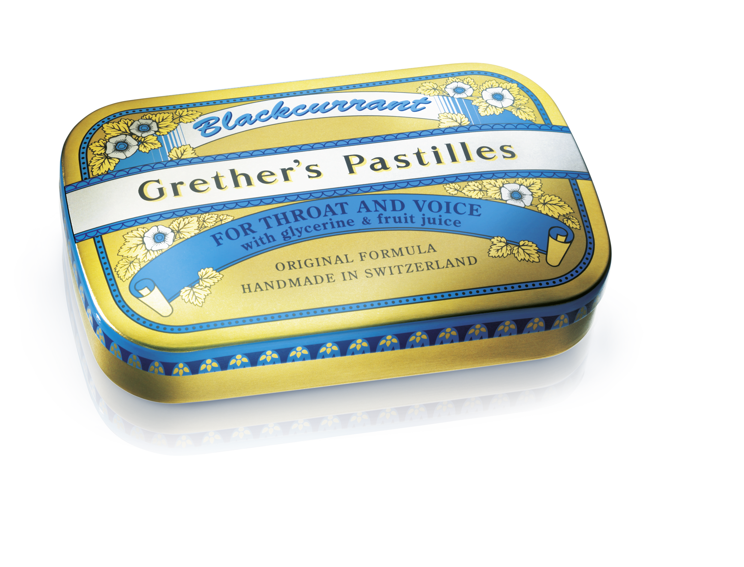 The incomparable fruity yet mild essence gives these soothing pastilles their distinct flavour and deep dark colour. Grether’s Pastilles Blackcurrant are available with sugar and as a sugar-free version sweetened with maltitol syrup and acesulfame-K.