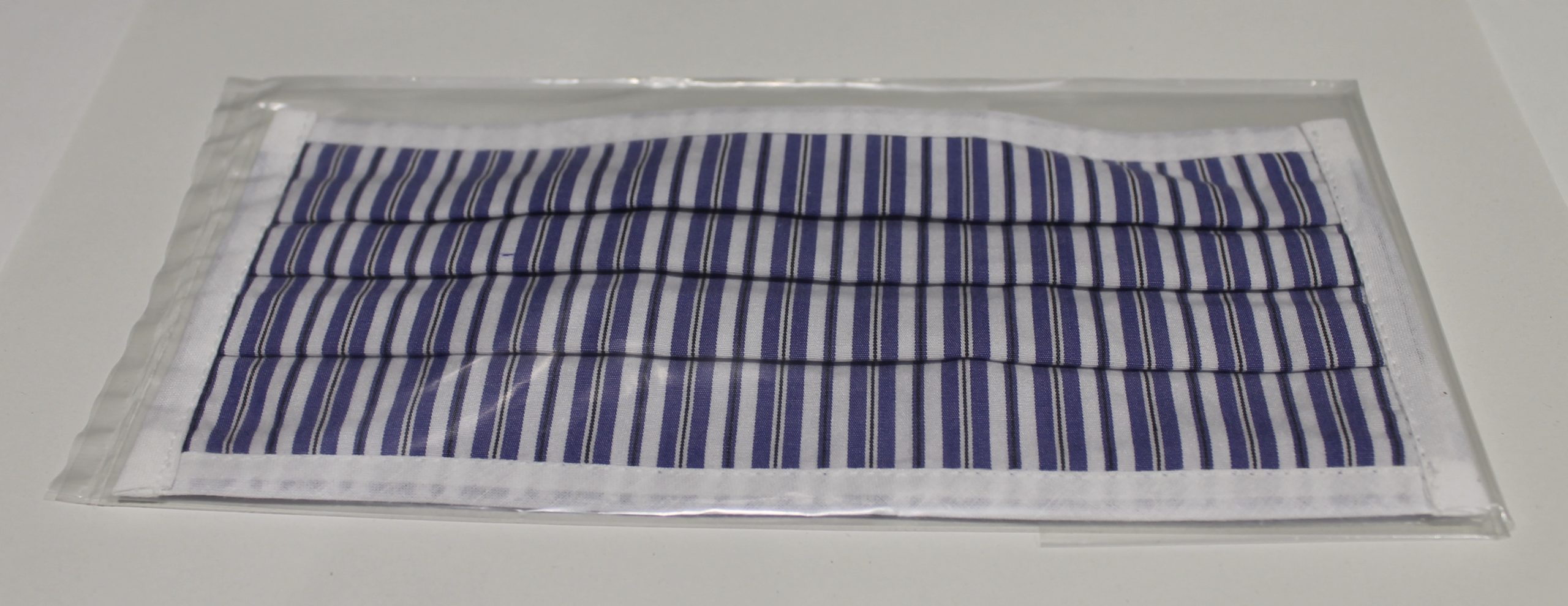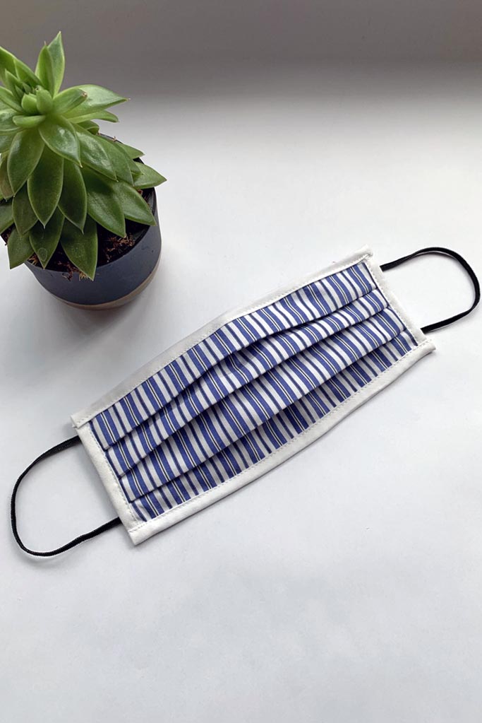 Pleated Blue Stripe Face Mask, available in 2 sizes: S-M & L-XL.