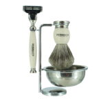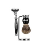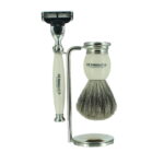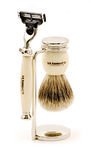 This shaving set makes the ideal starting point for someone looking to get into wet shaving. Heavier in weight compared to our other starter shaving sets. The set includes a razor with a Gilette Mach 3 head and a Best Badger Bristle shaving brush.
