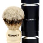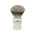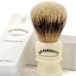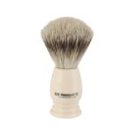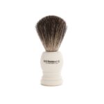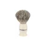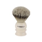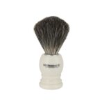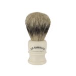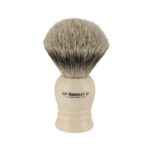 This is an ideal beginners brush and is made of Black Bristle, the lowest grade of Badger Bristle. This brush has a lightweight handle and is presented in a traditional, imitation ivory finish.