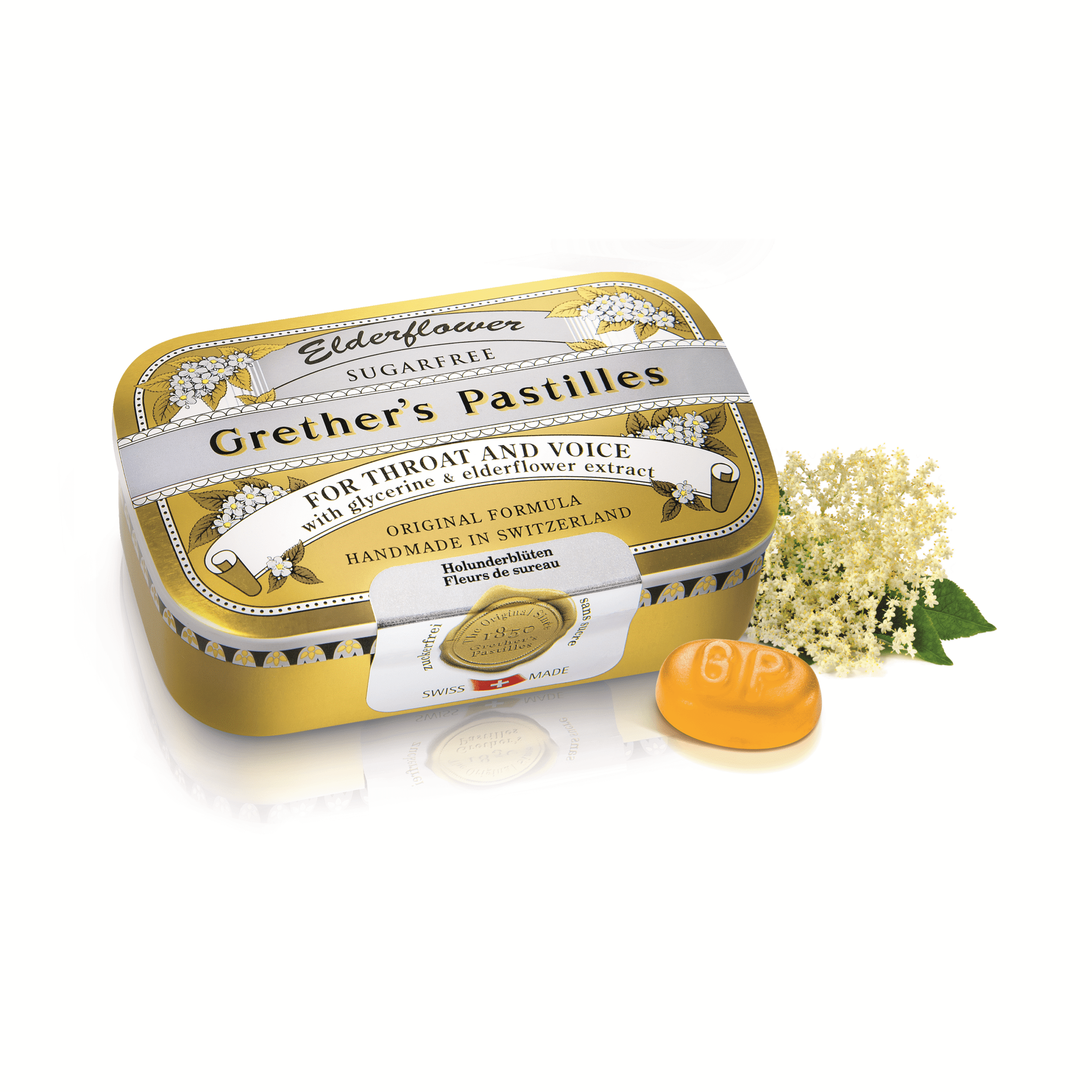 Grether’s Pastilles Elderflower sugar-free – the tart, fruity treat with extracts of elderflower and lemon balm.
