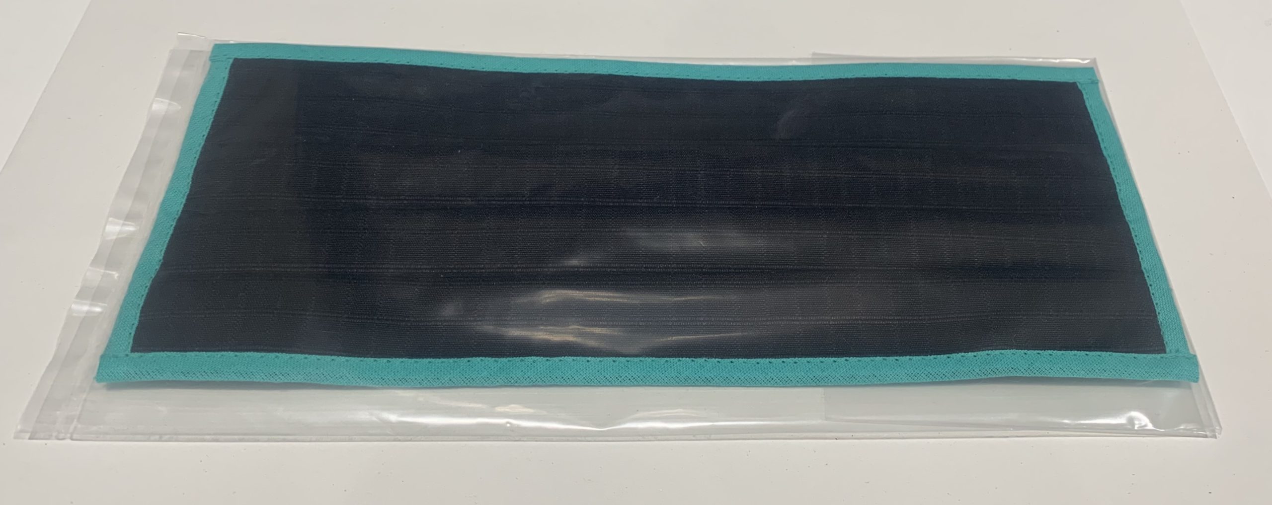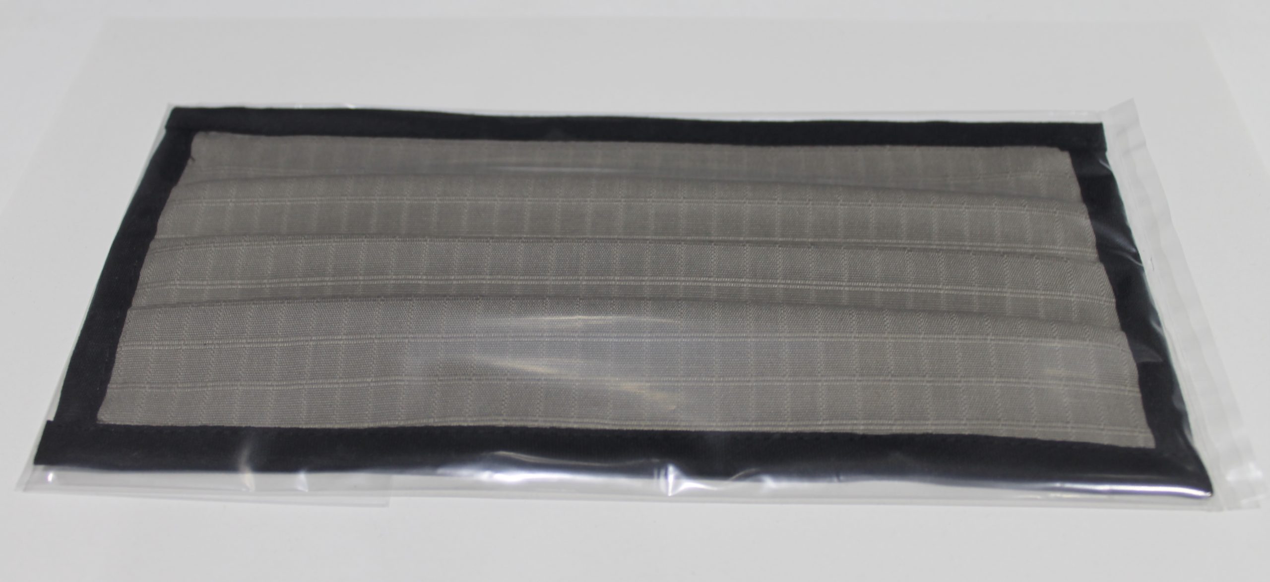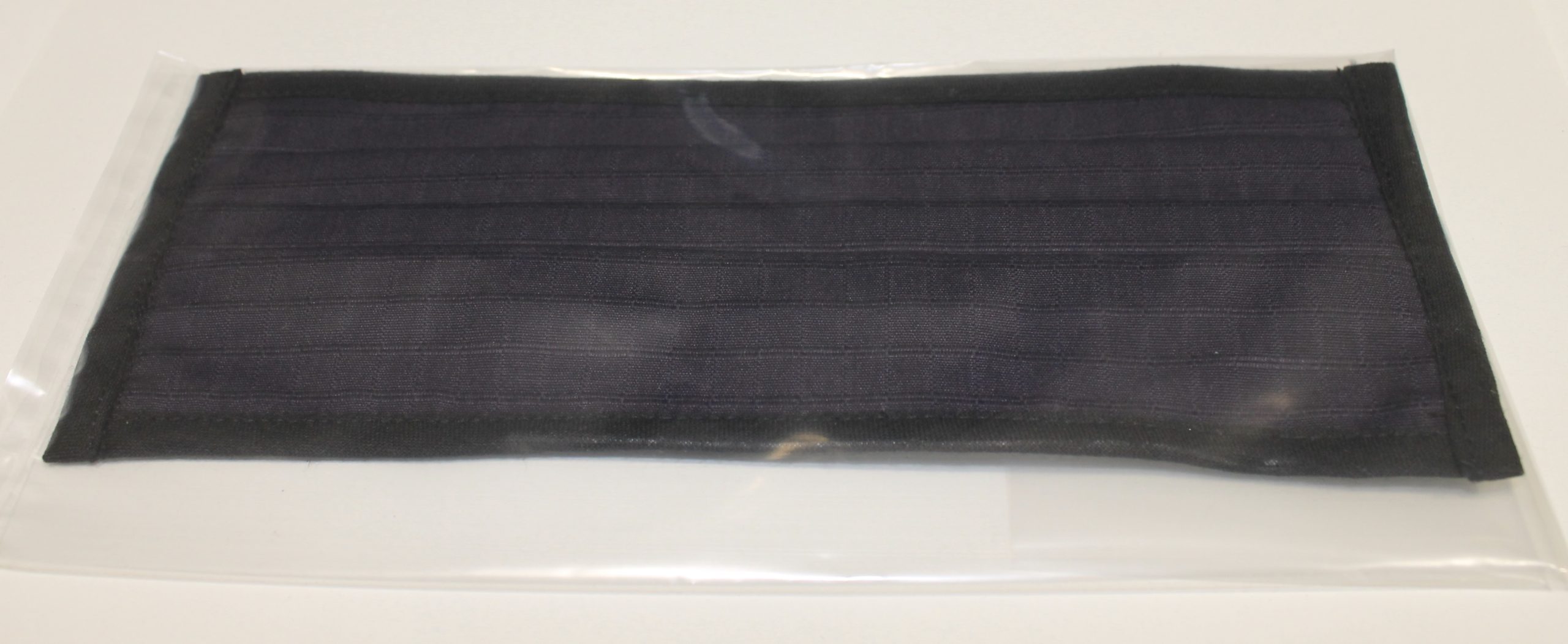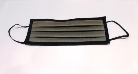 This face mask is made from organic Cotton Performance Fabric: 63% cotton, 35% polyester, and 2% lycra, with silverplus antibacterial finish. Inner lining is 65% polyester, 35% viscose.