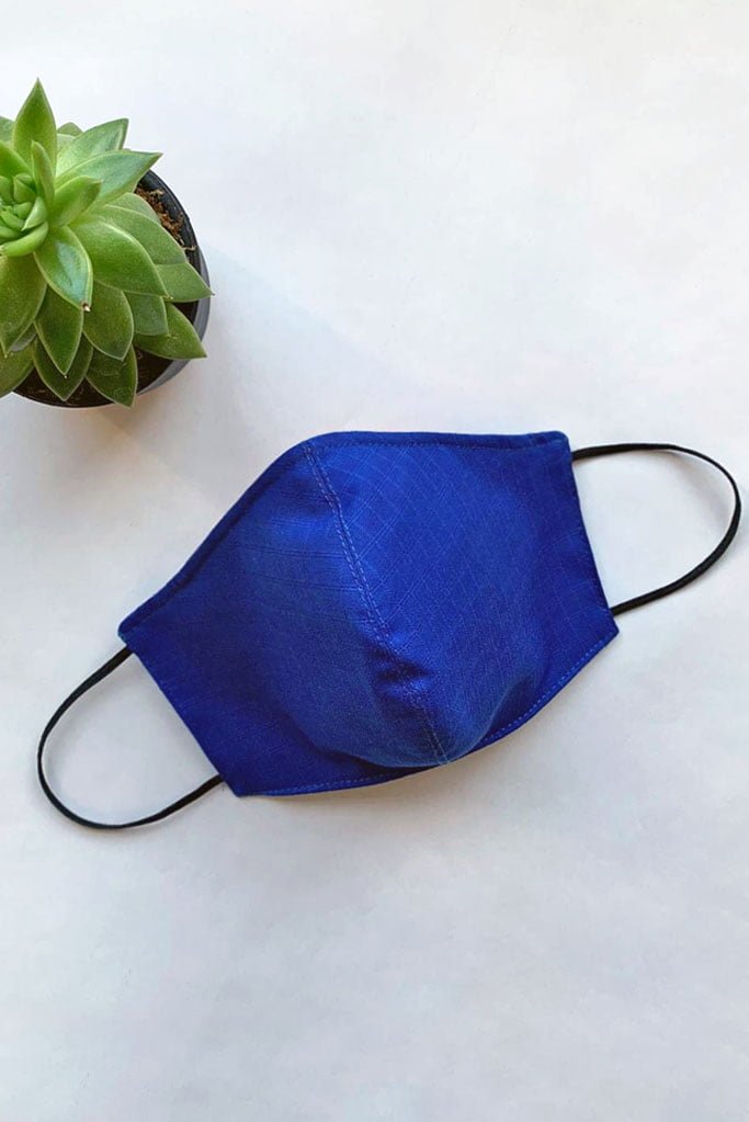 Pleated Royal Blue Face Mask, available in 2 sizes: S-M & L-XL.