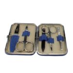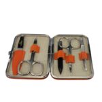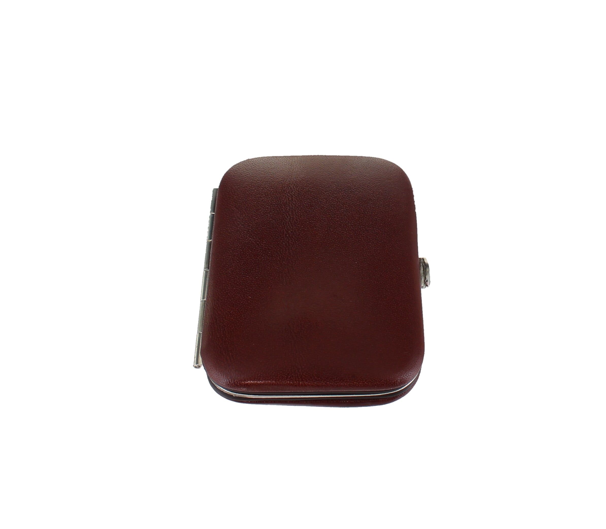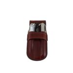 This 4 piece manicure set comes in a delightful brown leather hard case. This set includes tweezers, nail file, nail clipper and pen knife.
