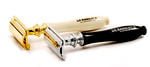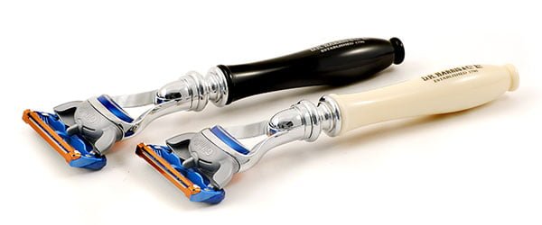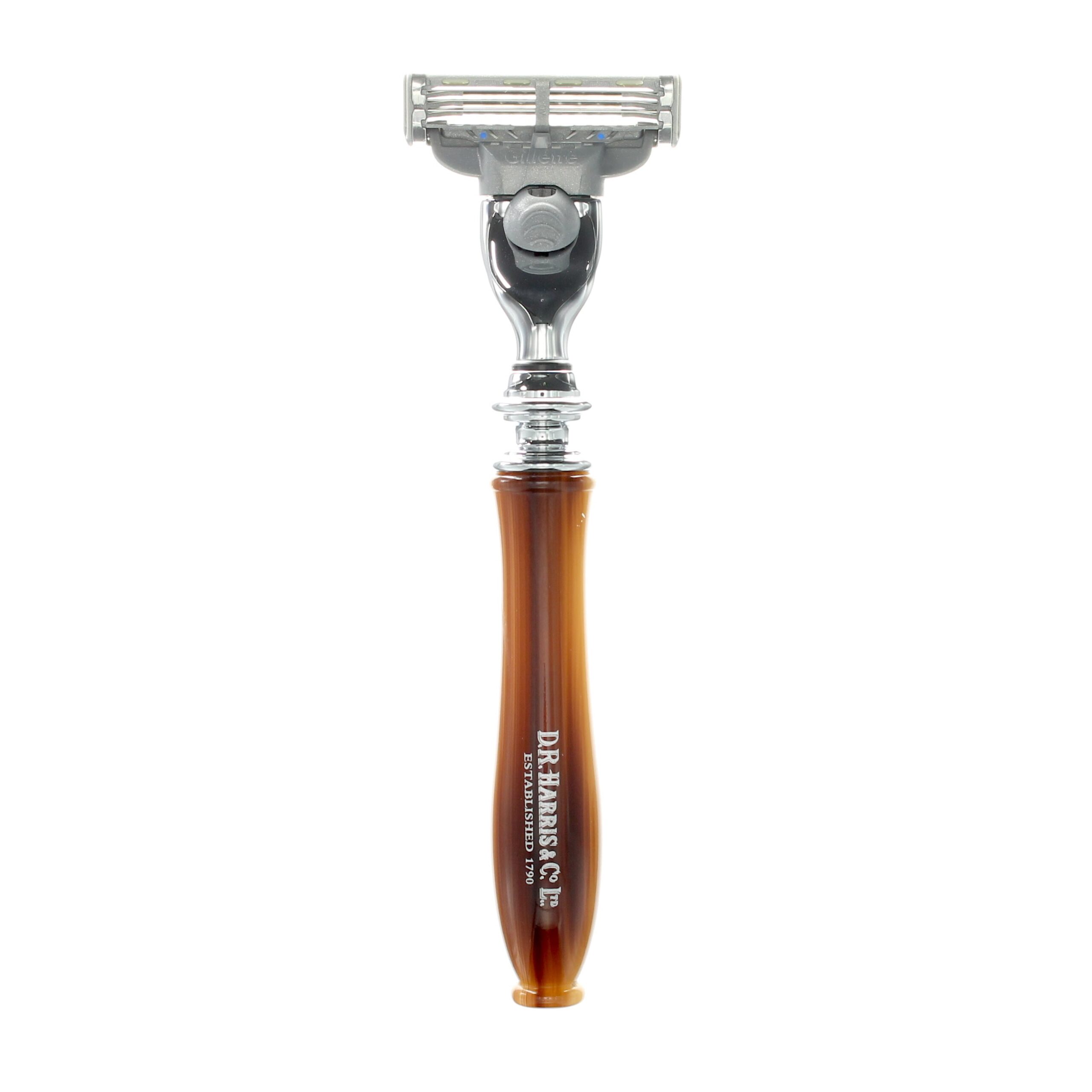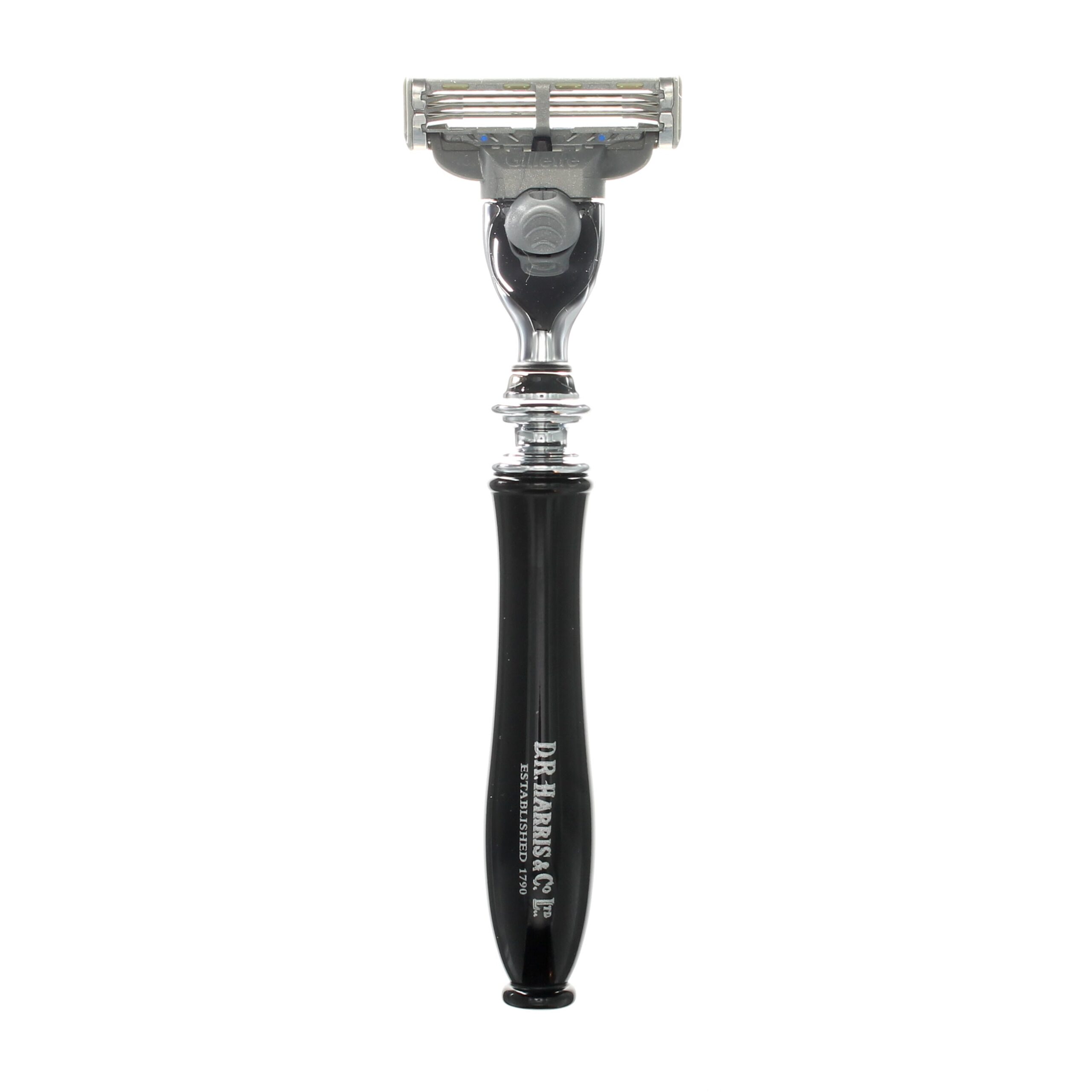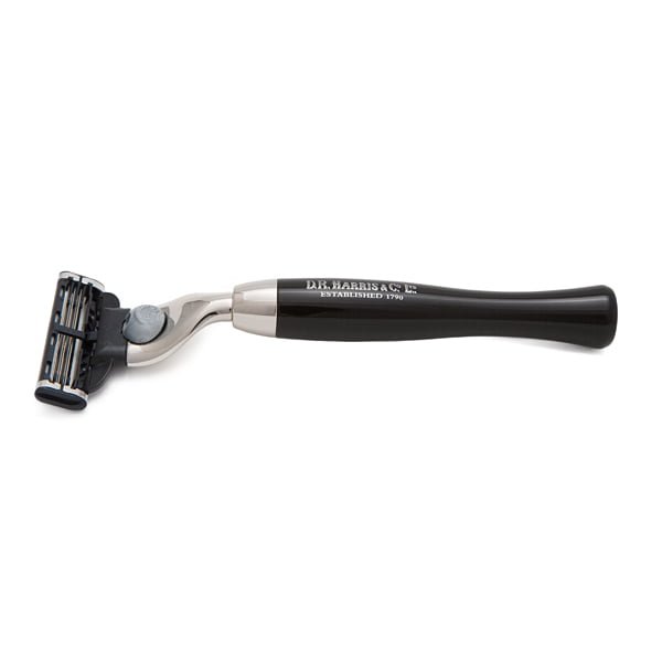 A traditional D.R. Harris embossed razor to fit with the Gilette Mach 3 head, combining the best of modern shaving products with the finest English craftsmanship. Available in Ebony, Ivory and Horn finishes with chrome accents.
