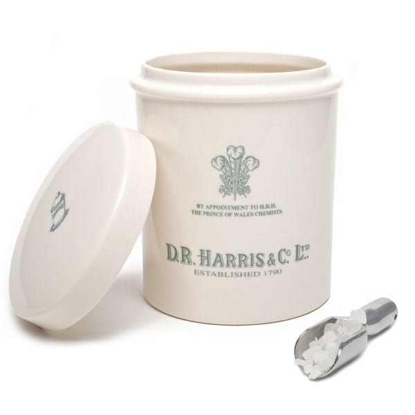 A stunning D.R. Harris Earthernware pot made by Burleigh in Stoke-on-Trent, containing luxurious Arlington bath salts. Includes a beautifully crafted wooden scoop. The ideal gift or indulgent treat for yourself.