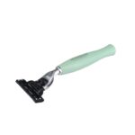 Mach 3 Razor with a medium weighted handle in a vibrant pastel green shade. The razor head is compatible with Gillette Mach 3 heads as well as Gillette Venus blades for women.