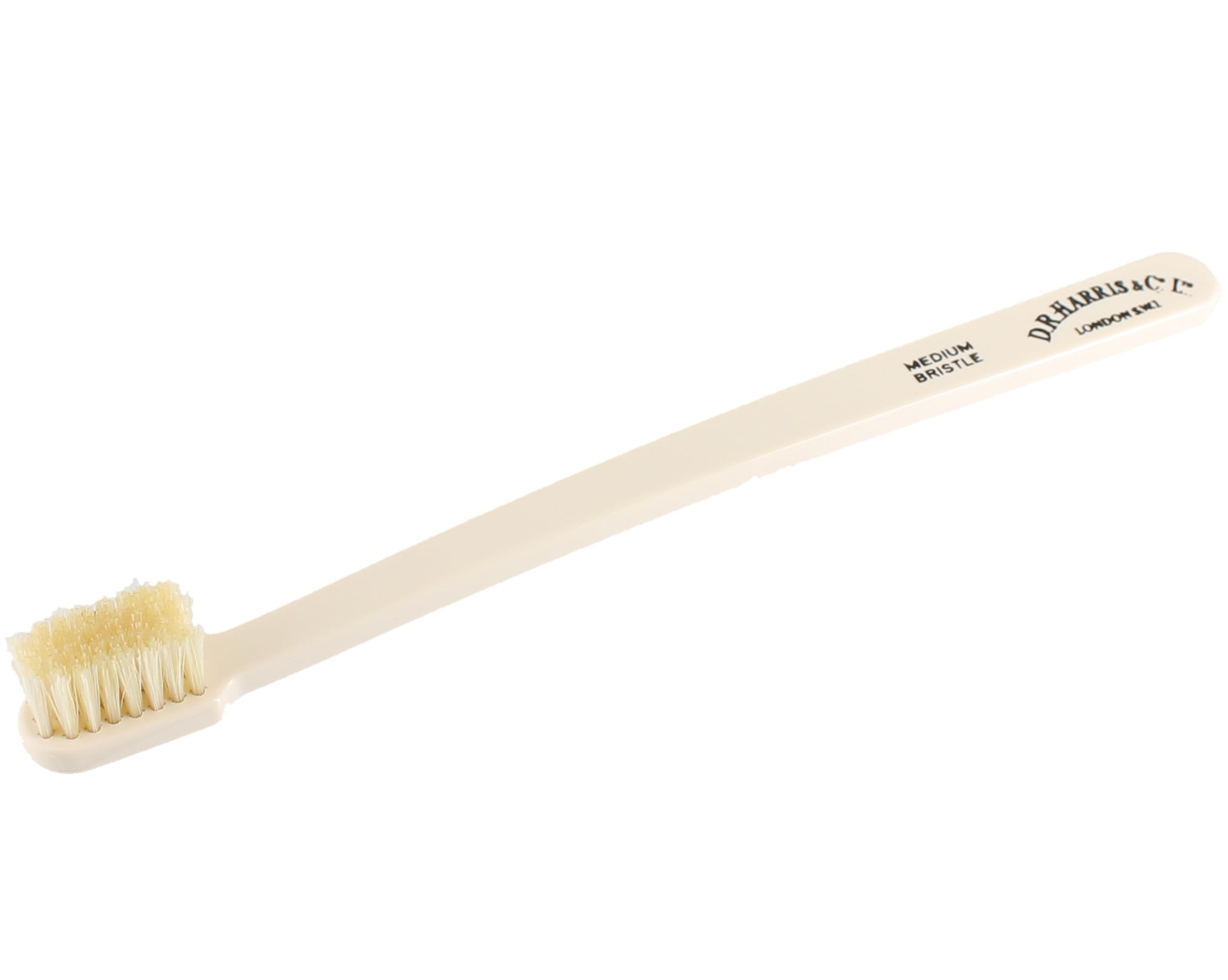 Made with boar bristles in a unique design to aid cleaning in between teeth and increase comfort. This toothbrush features a pleasing handle made from high quality plastic and includes the D. R. Harris logo embossed on the front and our signature on the rear. The hard version is ideal for those looking for an extra stiff toothbrush.