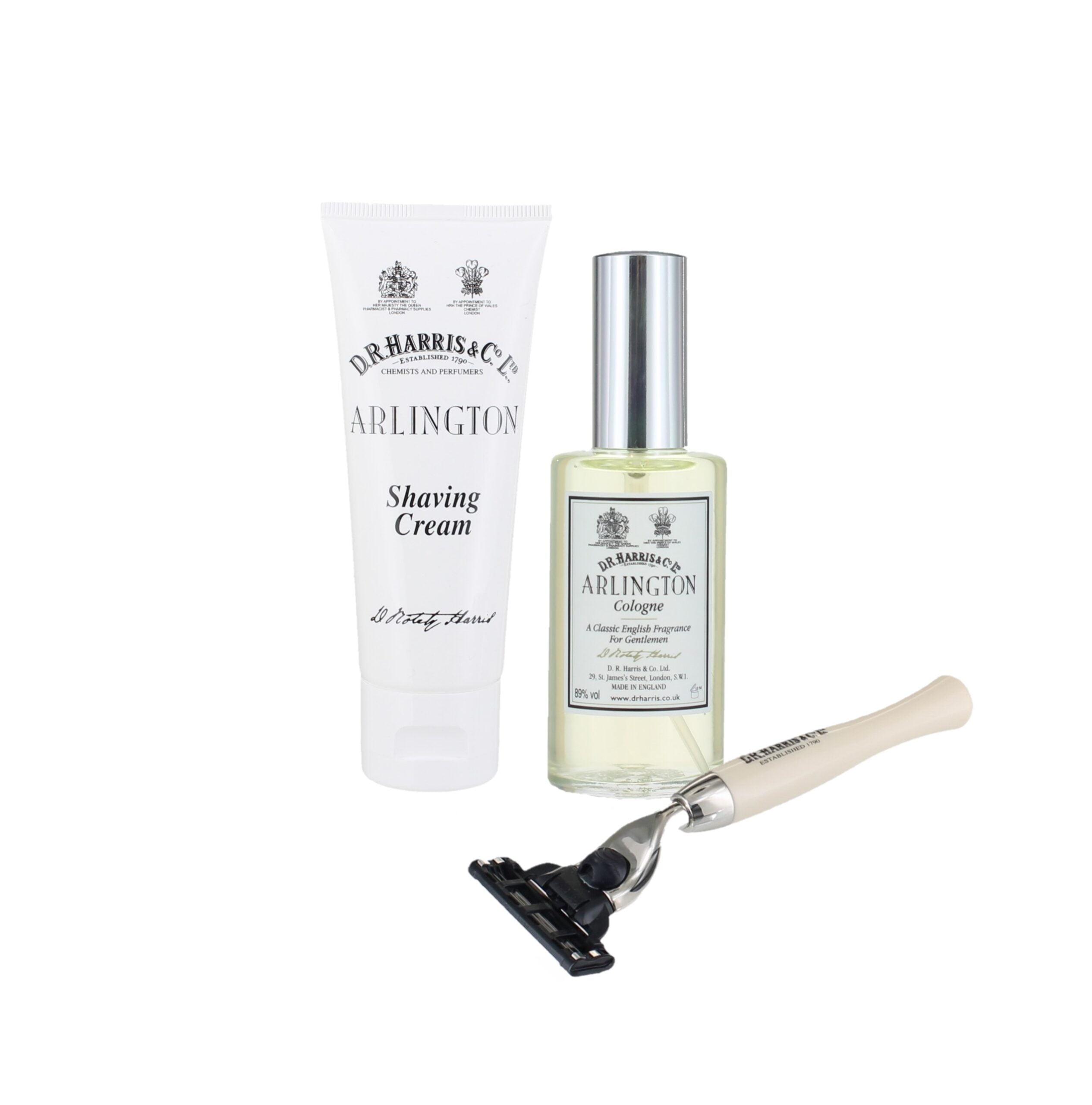 The Perfect Kit for shavers old and new. This kit contains an Ivory starter razor, 50ml Cologne Spray and 75ml shaving cream tube.