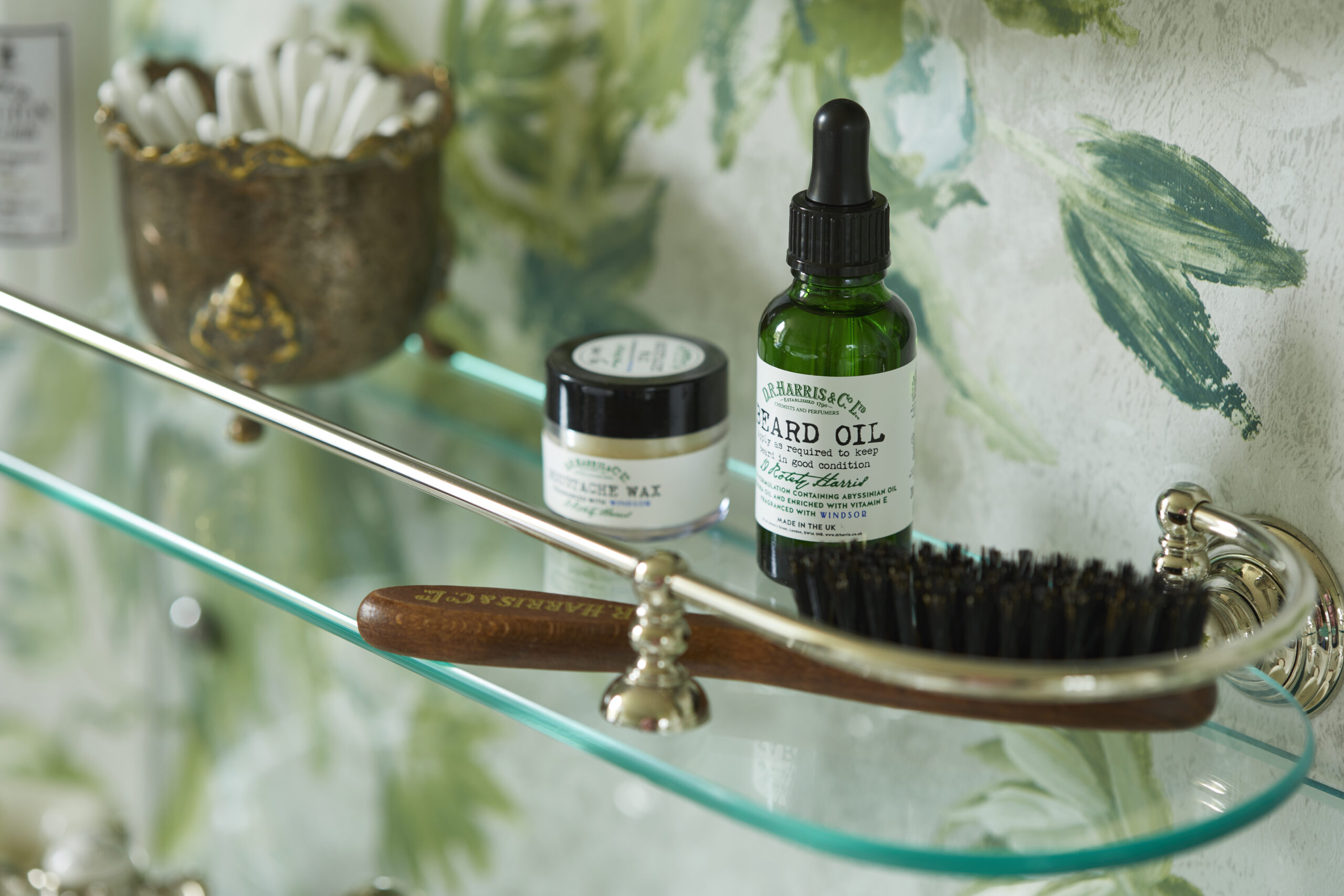 The D. R. Harris Beard Oil is fragranced with Windsor, a blend of grapefruit, black pepper and vetiver. It’s one of our most popular fragrances and works wonderfully in this format. The formulation contains Abyssinian oil, which is easily absorbed by hair to give it a lustrous quality, and jojoba oil which replicates sebum and can prevent its overproduction. Jojoba oil also softens and strengthens hair so you won’t have any brittle hairs snapping (yes, it can happen).